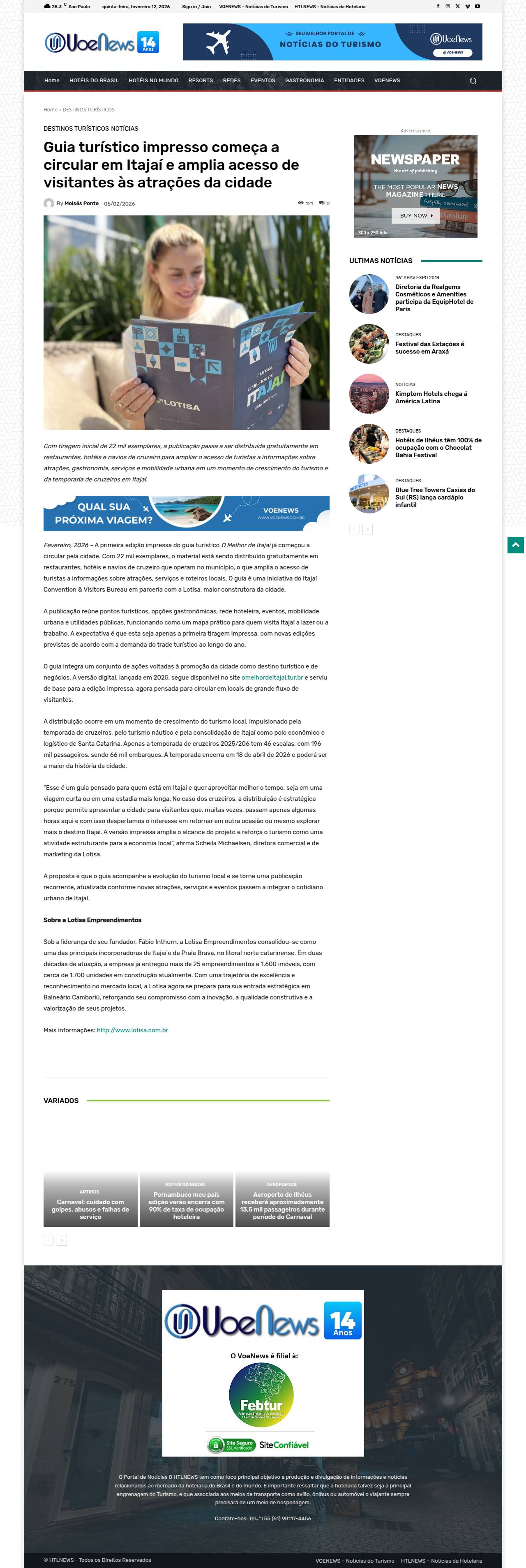 Guia turístico impresso começa a circular em Itajaí e amplia acesso de visitantes às atrações da cidade VOENEWS - Notícias do Turismo