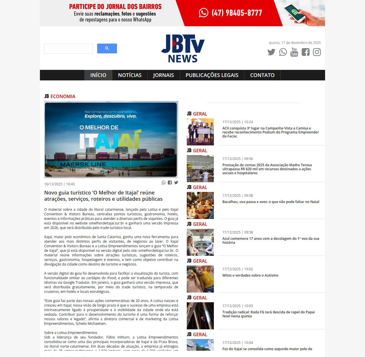 16/12/2025 - Jornal dos Bairros Itajaí